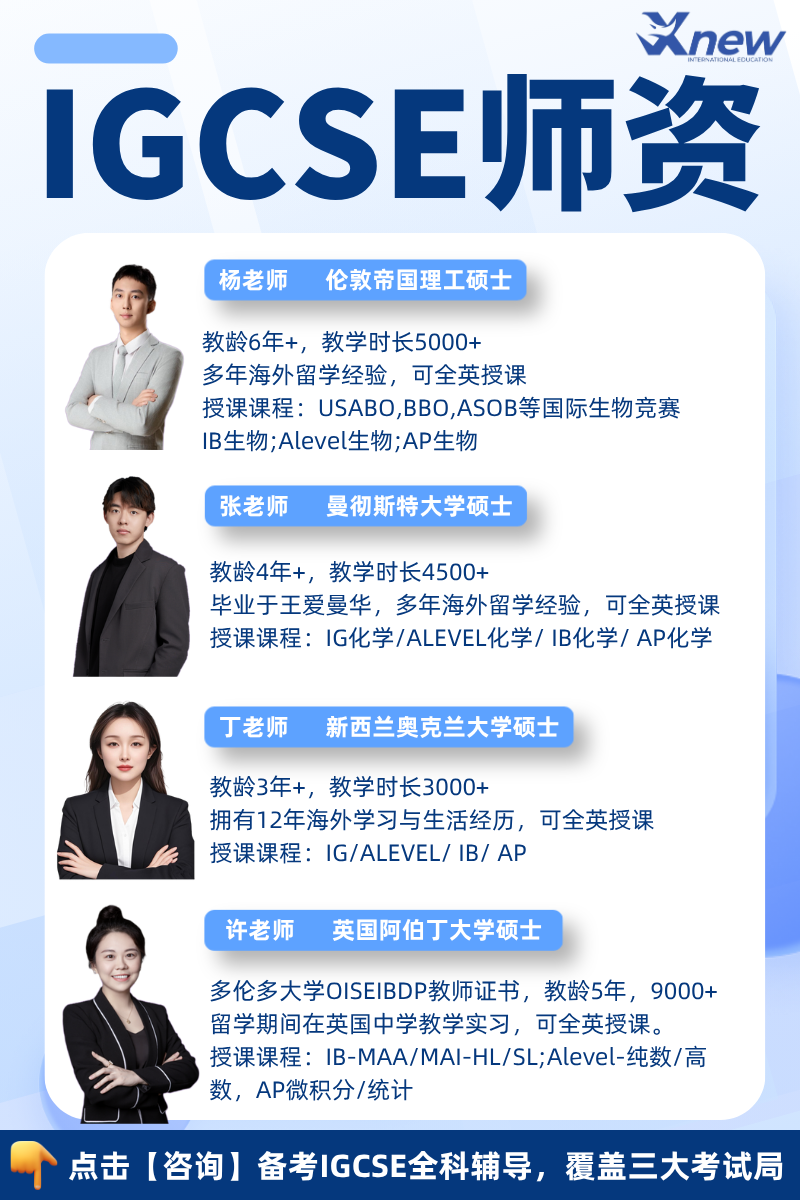 作为深耕国际课程辅导多年的知名机构,犀牛国际教育精准契合以上选择标准,专注深圳IGCSE辅导与IGCSE培训,同时兼顾香港IGCSE课程辅导需求,为深圳学生打造全方位的IGCSE课程解决方案。在师资方面,深圳犀牛国际教育的导师实力雄厚,63%毕业于QS前100顶尖院校,另有部分导师来自深圳本地顶尖高校,平均教龄5年以上,人均授课4000+小时,不仅深谙深圳IGCSE考试规律,更能精准把握香港IGCSE考试特点,结合IGCSE热门科目特点因材施教,助力学生规避学习误区、高效掌握知识点。