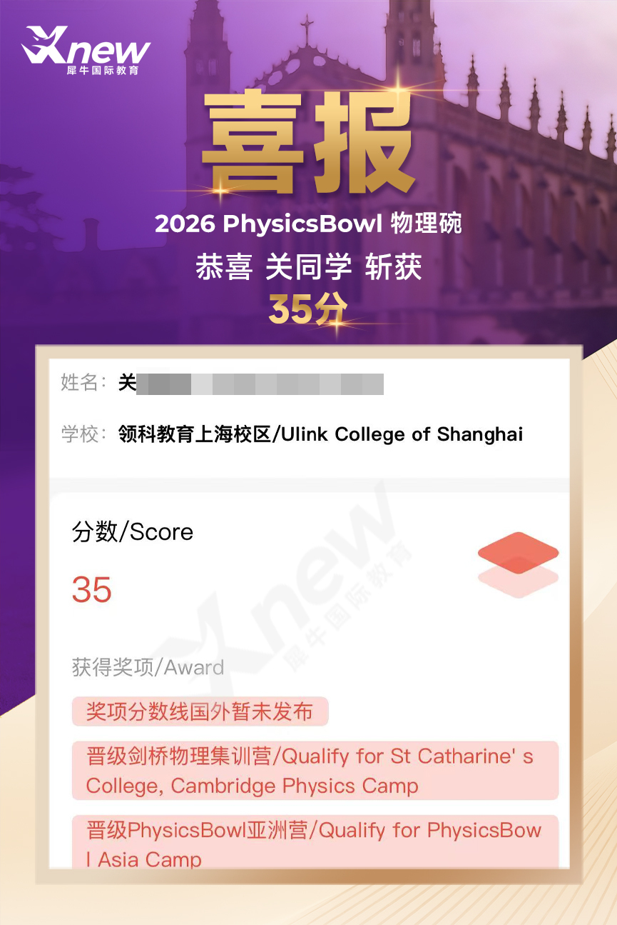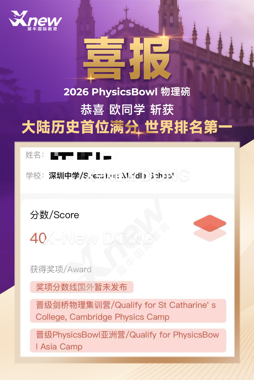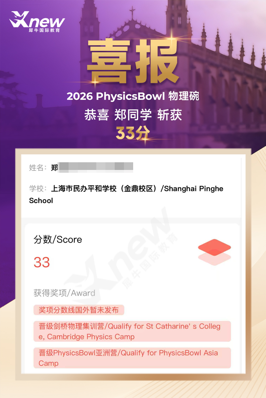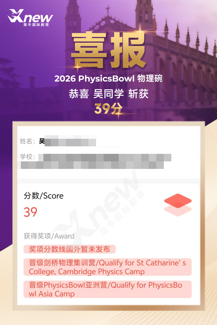 重大喜讯:犀牛国际教育学员获得物理碗竞赛满分!多名高分学员,成绩喜人!