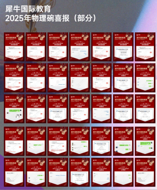 喜报!犀牛国际教育学员斩获物理碗满分!高分学员云集!犀牛物理竞赛课程同步上线~