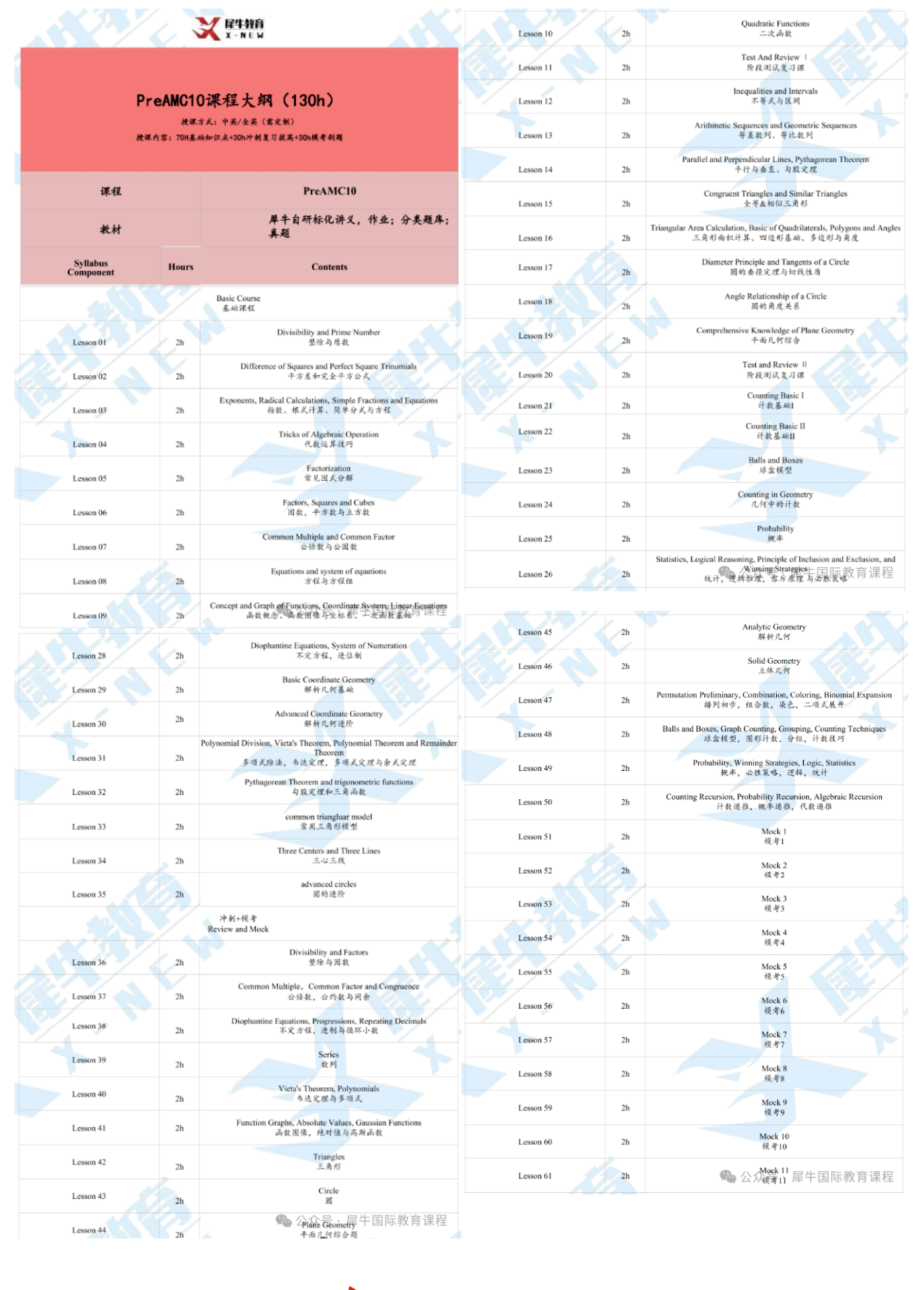 课程目标:通过130小时学习,补充AMC8至AMC10的衔接知识,构建完整竞赛体系。