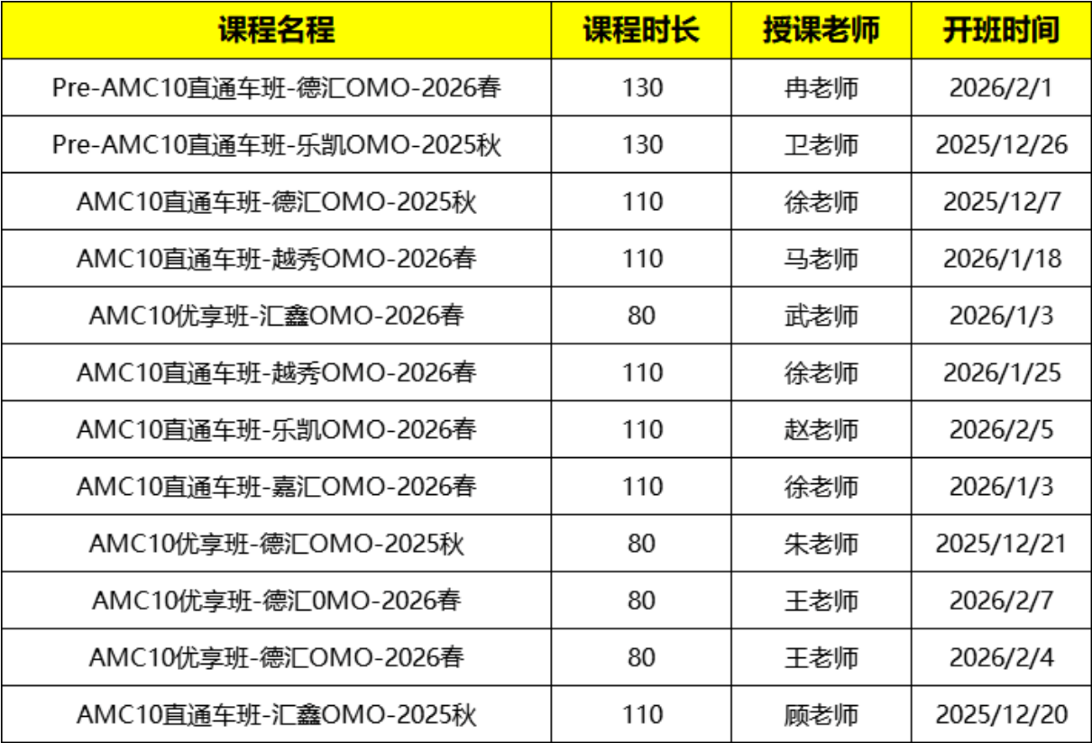 AMC10竞赛课程安排