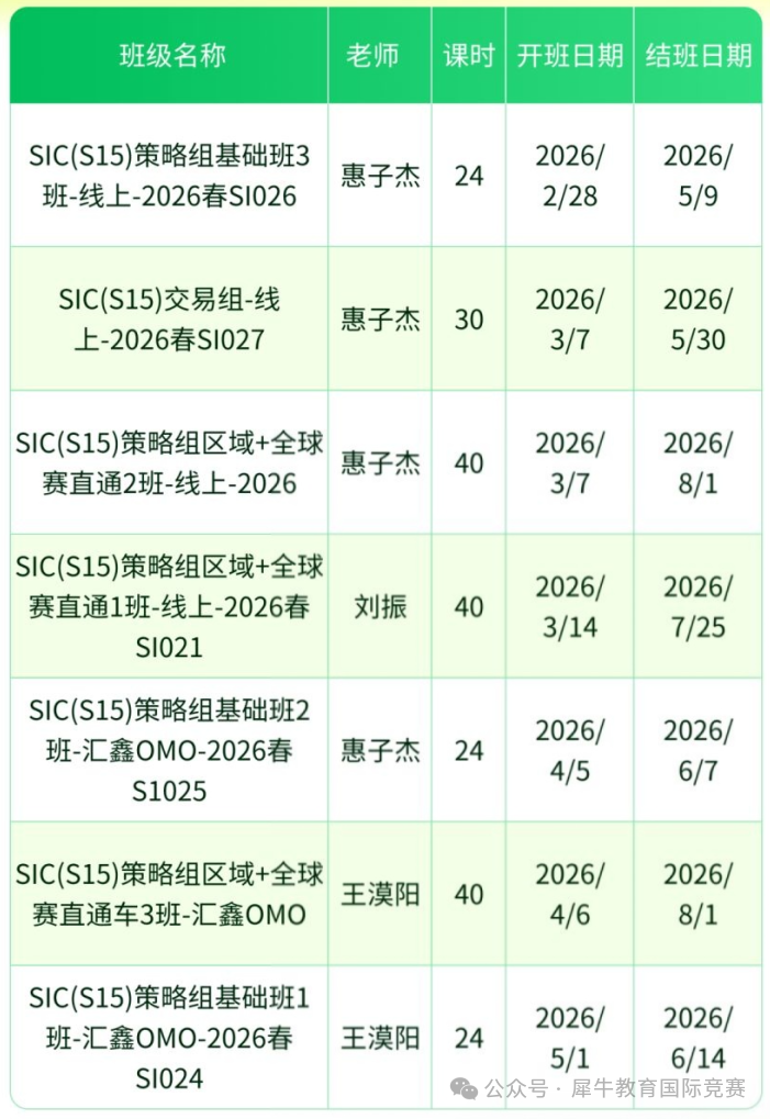 国际生商赛入门首选!SIC春季赛报名开启!犀牛SIC竞赛辅导课程安排